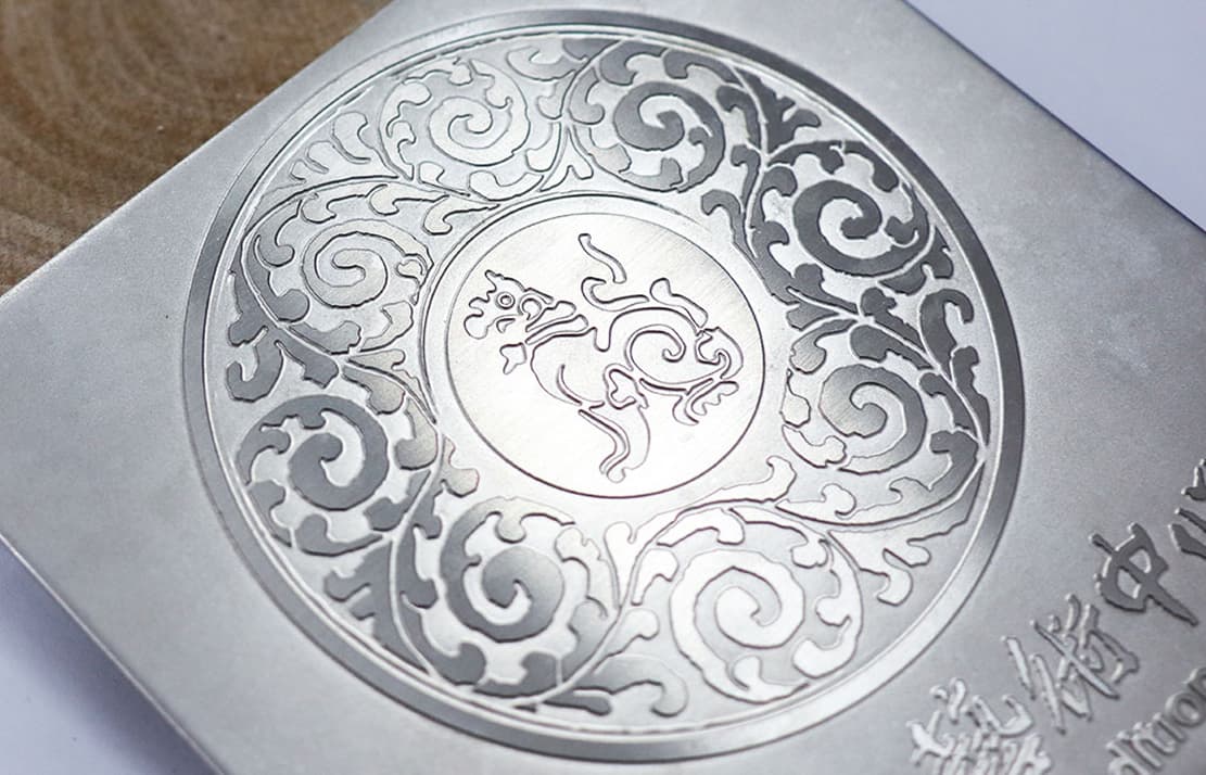 3.蝕刻可以達到較廣深度,從極淺 0.02mm 到深刻 0.5mm 皆可製作。但需留意:蝕刻越深,凹線會變粗、凸線會變細,因此我們將依設計精細度與搭配工法,協助您選擇最合適的深度。